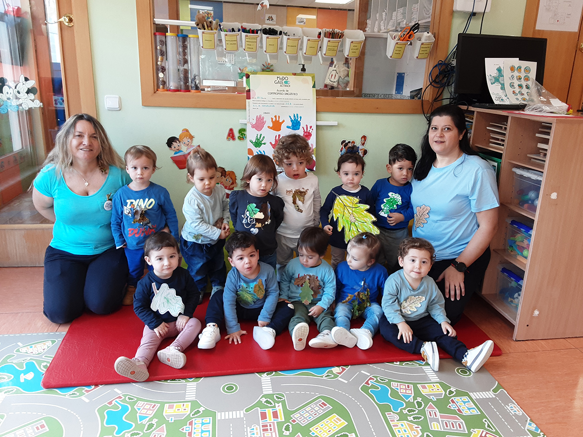 No día de hoxe o persoal a EIM A Madalena e os nenos enenas tiñamos que traer unha prenda de cor azul e unha folla de Carballo prendida na roupa. Tivemos un pouco de todo, follas de carballo naturais, follas de carballo pintadas e tamen follas de carballo de fieltro cosidas á roupa!!! todo un éxito.